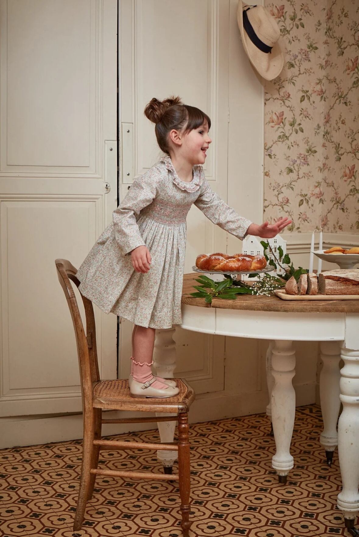 【KIDIWI】Hars, smocked dress in Ditsy pink and tea print(2y,3y)